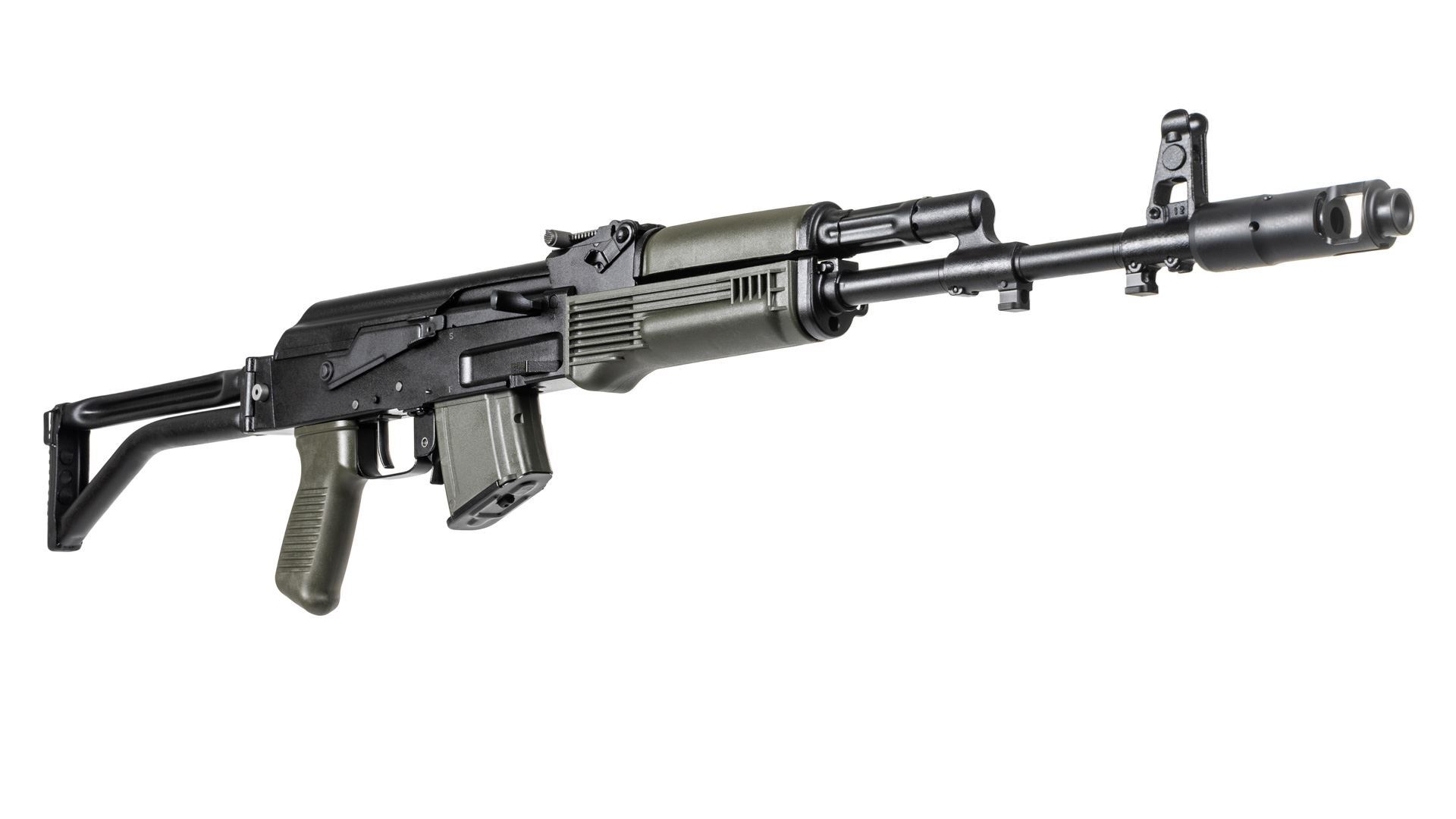 SAM7SF-84EGM | SAM7SF OD Green furniture model 7.62x39mm caliber rifle OD Green 10rd magazine milled and forged receiver enhanced double stage fire control group chrome lined hammer forged barrel 24×1.5mm muzzle right hand threads muzzle brake bayonet and accessory lugs right-side folding tubular buttstock OD Green polymer pistol grip and handguards stainless steel heat shield ambidextrous safety lever scope rail sectional cleaning rod one OD Green 10-round magazine sling oil bottle and cleaning kit.