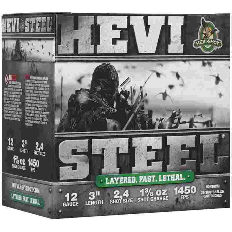 HEVI-Shot HEVI-Steel Shotshells 12ga 3″ 1-3/8oz 1450 fps #2&#4 25/ct
