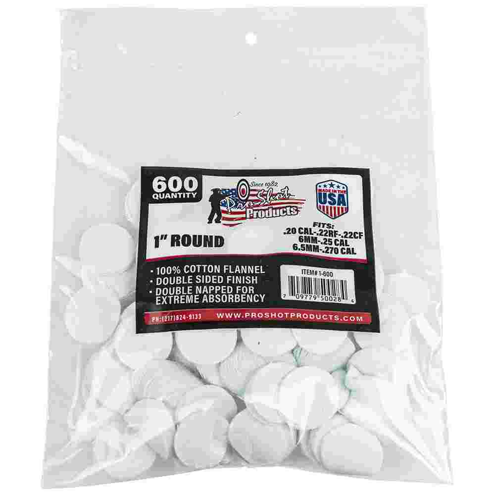 1" Round .22 Cal.-.270 Cal. 100% Cotton Flannel Gun Cleaning Patches – 600 Count