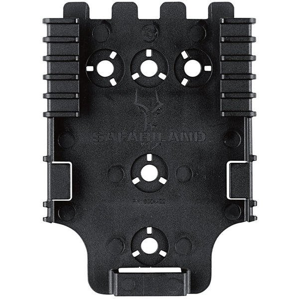 The QLS 22 Receiver Plate is designed to accept the QLS 19 Locking Fork. Constructed of injection molded nylon it screws onto mounting platforms such as a tactical leg shroud belt loop wall or any other stable location. The system (fork and plate) works with any Safariland 2-hole pattern pouch or 3-hole pattern holster. Rearrange gear quickly and easily without the use of tools. The QLS fork and plate combination passes the Level I Retention pull test.